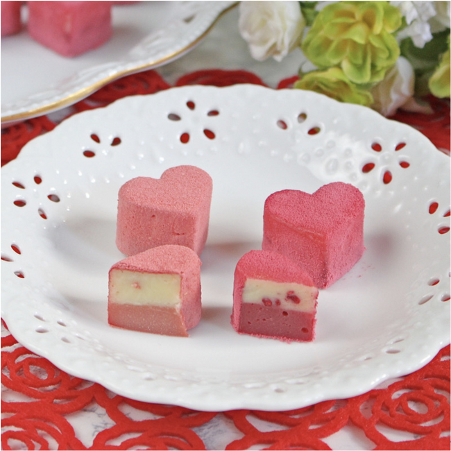 ■レシピ名:ハート型でかわいい いちごとラズベリーの生チョコ