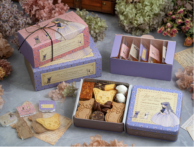 くらはしれいさんのイラストで、女の子とこねこが過ごす優しい時間をテーマにしています。スタンプクッキー型・ギフト箱・ギフト缶・ヘッダーシールがトータルでコーディネート可能!バレンタインはもちろん、どんな季節にもぴったりです。ぜひお試しください。