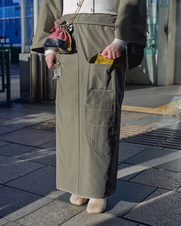 デザインのインスピレーションを受けたのは、機能面で沢山のポケットが付いているカメラマンジャケット。着物に落とし込む中で、アウトドア感が出過ぎないよう、着物が持つ上品さも残しました。生地は目の細かなトレンチコートの素材をセレクトし、パイピングを付けることでカジュアルになりすぎず、きちんと感を出しています。しわにもなりにくく、撥水効果もあり、お洗濯も可能です。スリーシーズンの長い間、気兼ねなくご着用いただけます。