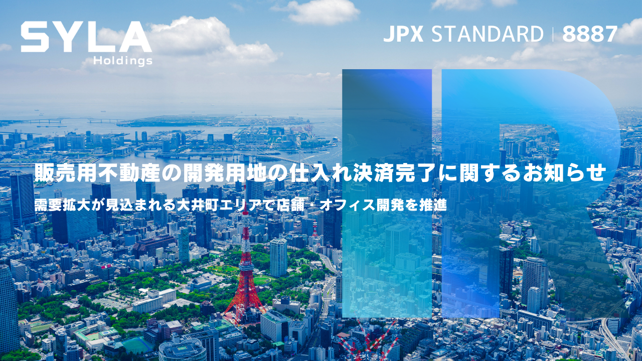 株式会社シーラホールディングス(本社:東京都渋谷区、代表取締役会長CEO:杉本 宏之、証券コード:8887、以下「当社」)のグループ会社である、株式会社シーラ(本社:東京都渋谷区、代表取締役:湯藤善行、以下「シーラ」)は、本日、下記の販売用不動産に関する開発用地の仕入れ決済を完了しましたので、お知らせいたします。