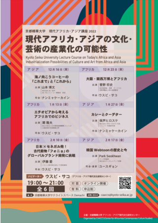 京都精華大学では、2022年12月16日より、全6回の日程で現代アフリカ・アジアに関する連続講座「現代アフリカ・アジアの文化・芸術の産業化の可能性」を開講します。