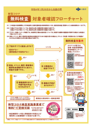 大阪府の感染拡大傾向時の一般検査事業が2月20日まで延長されたことに伴い、当検査センターでも無料検査実施期間を2月20日まで延長いたしました。
