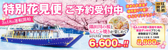 元祖もんじゃ屋形船【江戸前汽船】がお届けする「2023年特別花見便」。