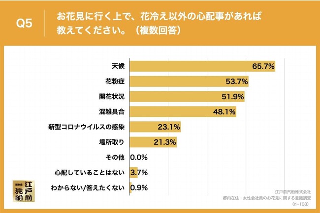 【江戸前汽船】お花見シーズン到来!今年の楽しみ方は?都内在住の女性会社員、約7割が「お花見」に行きたい!一方で、67.6%が「花冷え」を心配