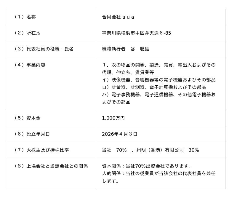 このような中、世界トップクラスのLEDメーカーである州明(香港)有限公司との戦略的連携を一層強化することで、高品質・高付加価値な製品供給体制の確立およびコスト競争力の強化が可能になると判断し、本子会社の設立を決定いたしました。