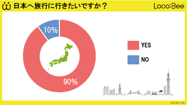 今回の回答では、8割が今後日本への旅行を希望しています。そのうち来日経験者は1割のみ。まだまだ日本に実際に訪れたことのある人は少ないようです。ベトナムは親日度合いが高いことで知られていますが、ここまで多くの人が日本を訪れてみたいと思ってくれているのは大変光栄なことです。
