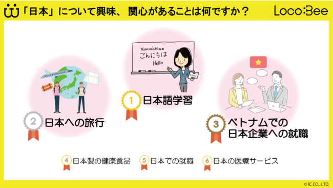 株式会社IC(本社:東京都品川区/スタンダード4769/代表取締役執行役員:斎藤良二)が運営する、国内最大級の在留・訪日ベトナム人向けポータルサイト【LocoBee】は、ベトナムに住むLocoBeeマガジンの会員に対し、アンケート調査を実施しました。