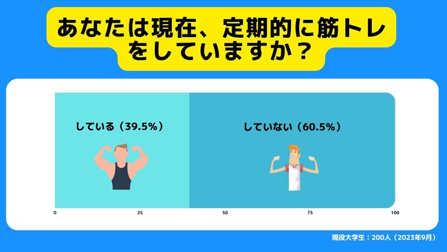 ■現役大学生の39.5%が定期的に筋トレを行っていると回答。