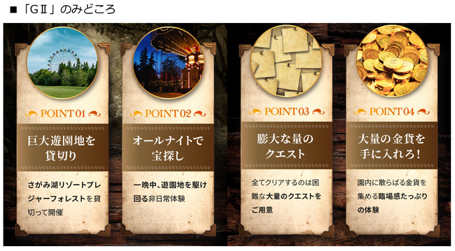 体験型コンテンツ「リアル宝探し」の企画・制作・運営を手がける株式会社タカラッシュ(本社:東京都品川区、代表取締役:齊藤 多可志)は、10月29日 (土)と10月30日(日)の2日間、さがみ湖リゾート プレジャーフォレスト(本社:神奈川県相模原市、代表取締役社長:茂手木 祐介)にて一般社団法人トレジャーハンター協会が主催するオールナイト宝探し「GII 2022 HUNTER’S CUP 〜老いたレジェンドハンターからの挑戦状〜」と、謎解き7団体が集結する「謎解きフェスタ in さがみ湖リゾート プレジャーフォレスト」の2大イベントを開催いたします。