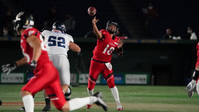 得点力が高いという点ではパナソニックオフェンスも同様だ。今季から加入のジェイロン・ヘンダーソンは投げて良し、走って良しの QB でシーズン中盤からオフェンスを自在に操る「マエストロ」ぶりを発揮している。