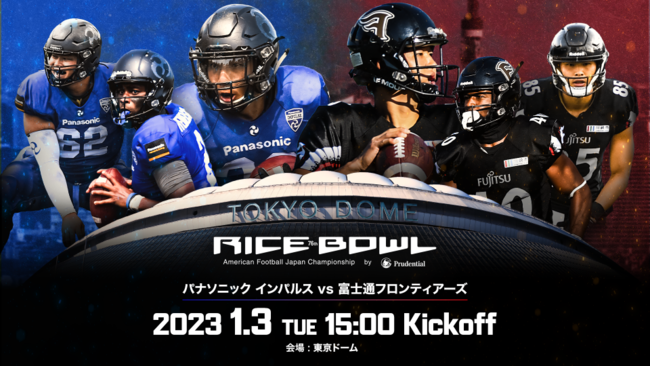 社会人アメリカンフットボール・X リーグの 2022 年度の王者を決めるアメリカンフットボール日本選手権プルデンシャル生命杯第 76 回ライスボウル(2023 年 1 月 3 日 東京ドーム ) は昨季優勝の富士通フロンティアーズ対パナソニック インパルスという前年と同じ顔合わせとなりました。