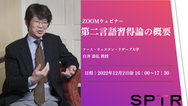 12/2(金) 16時から17時半、オンライン英語トレーニングを提供するスパトレ株式会社(本社:東京都千代田区、代表取締役:向井麻里絵)は、学校関係者様向けに第二言語習得理論の第一人者白井教授をお迎えしてオンラインセミナーを開催することをお知らせいたします。