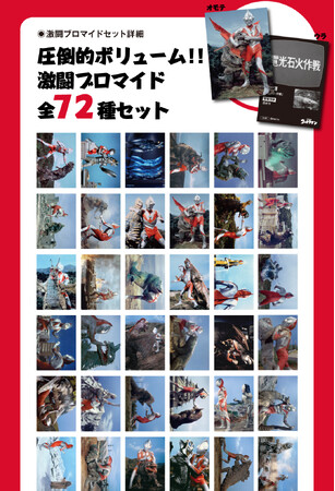 ストーリーや怪獣などのワンショットを収めた激闘ブロマイドは圧倒的なボリュームで全72種セット!