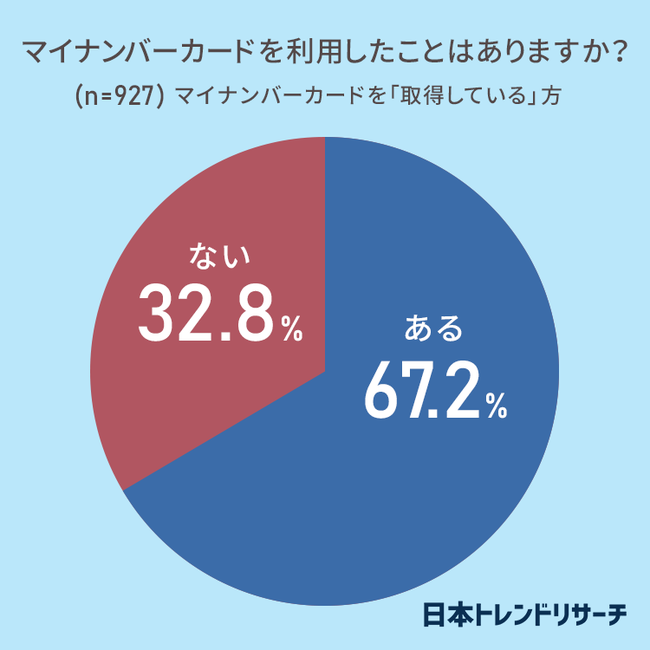 日本トレンドリサーチ(運営会社:株式会社NEXER)は、「マイナンバーカードの利用」に関するアンケートを実施し、結果をサイト内にて公開したので紹介します。