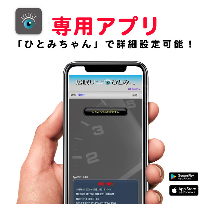 ◎またスマートフォン専用アプリケーションで居眠り検知感度、わき見検出ON/OFF、通知音、Gセンサー機能などの設定が可能。