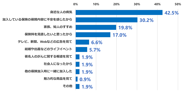 がん保険の加入/見直しのきっかけ:「身近な人の病気」がきっかけの方が多い