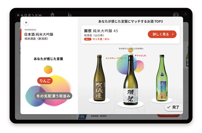 風味の感じ方を学習した日本酒ソムリエAI「KAORIUM for Sake」 料亭・居酒屋・ホテルなど様々な業態の飲食店 全国導入100店舗突破!