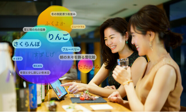 まるで唎酒師やソムリエのように、AIがお酒の風味や味わいを分かりやすい“言葉”で表現。言葉を見ながらお酒を味わうと、味覚の感度がグッと広がり、これまで感じられなかったようなお酒の味わいが感じられるようになります。