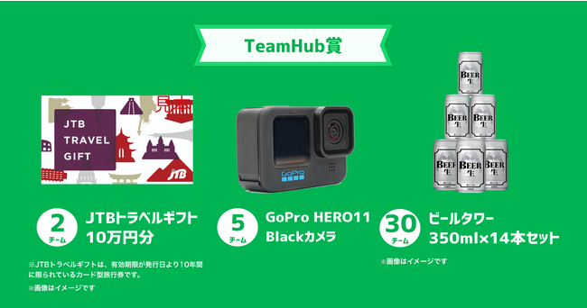 ・TeamHubのアプリでご参加の方は、ご登録いただいているメールアドレスへ当選の連絡と賞品に関するご案内をお送りいたします。