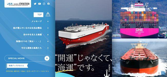 日本船主協会は、日本国内の海運業界128社(2023年2月1日時点)で構成され、海運業の公正かつ自由な事業活動を促進し、日本海運の健全な発展に寄与することで国民生活の向上に貢献することを目的とする事業者団体(https://www.jsanet.or.jp/)。同協会では、日本の暮らしと産業を支える海運の重要性や役割を伝えるべく、船舶や海事施設の見学会等イベントの開催、小中学校での出前授業、およびウェブサイト・SNSを活用した情報発信等を展開してきました。今回は、『さらに多くの方に「海運」の存在を知ってほしい』という想いのもと、実施にいたりました。