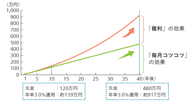 〈例〉毎月1万円積み立てた場合の期間ごとの資産額