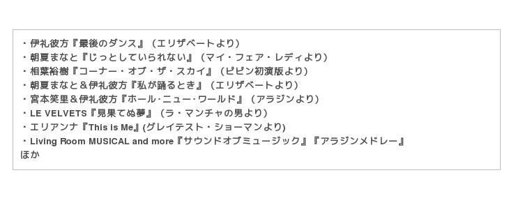29日のHARBOR STAGE「This is ミュージカル」では、昨年大ヒットした映画『グレイテスト・ショーマン』の世界観を軸に、伊礼彼方がストーリーテラーとしてミュージカルの国へ誘い、さまざまなミュージカルの名曲たちを展開いたします。ほか出演者には、LE VELVETS、朝夏まなと、相葉裕樹をはじめ、新たにエリアンナと宮本笑里の追加出演が決定。また、”劇場を飛び出したミュージカルスターたちが集い、歌い踊る!”をテーマにeplus Living Room CAFE&DININGで行われている好評企画『Living Room MUSICAL』から、大月さゆ・彩花まり・岡本悠紀の出演に加え、吉田萌美・土倉有貴の出演も決定いたしました。