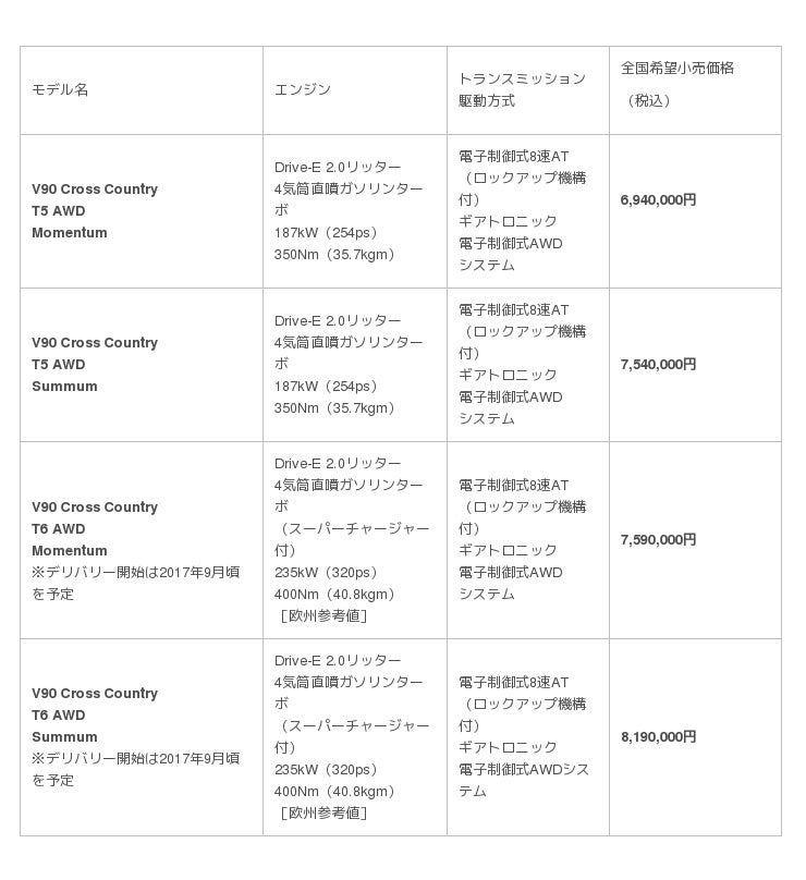 ボルボ・カー・ジャパン株式会社(代表取締役社長:木村隆之、本社:東京都港区)は、ラインナップの最上級モデルとなるフラッグシップ・セダンS90、プレミアム・エステートV90、プレミアム・クロスオーバーV90 Cross Countryを本日より発売いたします。