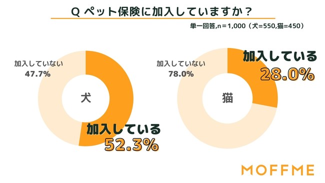 今回の調査では、犬のペット保険加入率は52.4%で、猫は28.0%という結果になりました。