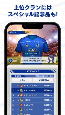 その第2弾となる「大分トリニータ公式サポーターズクラウン」は、トリサポ仲間が毎日集まる場をゲームというカタチで提供しています。大分在住の方はもちろん、都心などにお住まいのトリサポの方にも楽しめる要素をたくさん盛り込んでいます。例えば、毎日開催の試合スタッツ連動ゲームやクランランキングなどはグループ同士で競い合うので、別々に暮らす家族や兄弟、学生時代の友人、遠く離れたトリサポ仲間など、気の合う仲間と一緒に楽しむことができます。