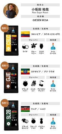 そんな、小坂田 祐哉 焙煎士(Raw Sugar Roast)の参加を記念して、飲み比べセット(50g×3銘柄)「KOSAKADA Sugary BOX」を数量限定にて販売開始いたします!