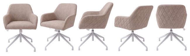 デスクチェアと同じく、360度回転します。座ったままくるっと向きを変えられるので、限られたスペースでも椅子を引かずに出入りが出来ます。
