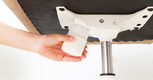 ダイニングチェアではあまり見ない「高さ調整」は、シート下にあるレバーで簡単に調整が出来ます。座面の高さが約45.5-56cmの間で昇降しますので、お子様から大人まで、様々な身長をカバーしてくれます。