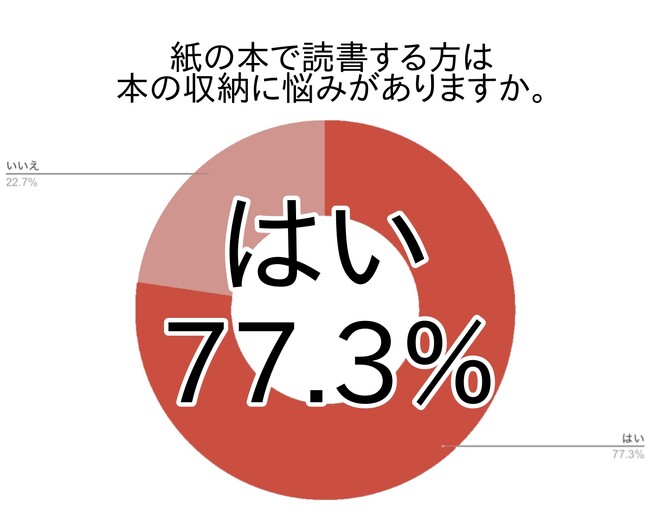 紙の本で読書する方で本の収納に悩みがあると答えた方は関東で約8割(77.3%)でした。