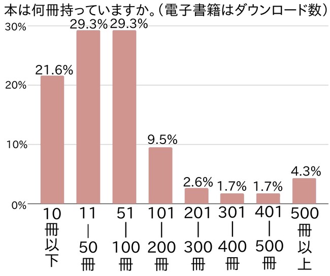 読書をしている方が大多数であることがわかりましたが、本を何冊程度持っている方が多いのでしょうか。アンケートで尋ねてみました。