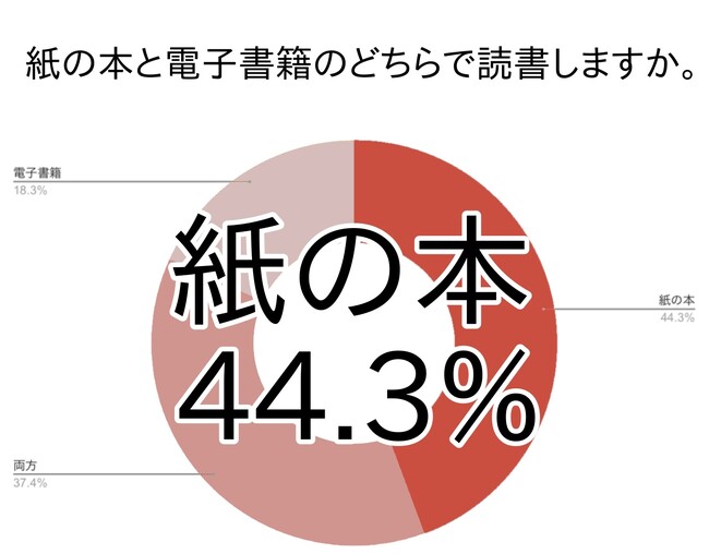 関東地域では紙の本と電子書籍のどちらで読書すると答えた方が最も多く、4割強(44.3%)でした。両方(37.4%)と答えた方を合わせると8割強(81.7%)の方が紙の本を読んでいることになります。