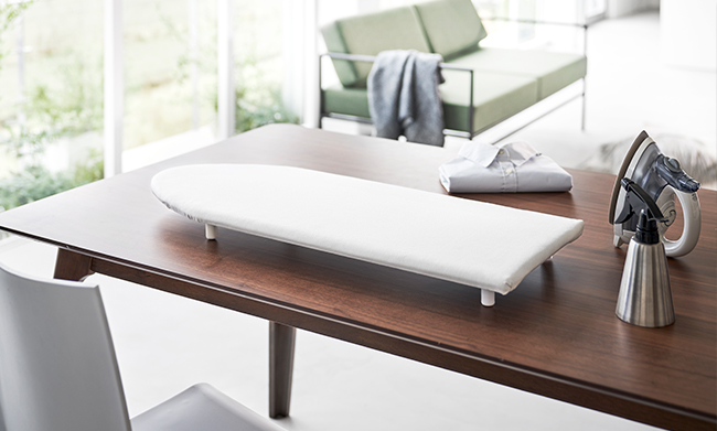 卓上でスチームアイロンが快適に掛けられる、すべらない脚付きアイロン台。