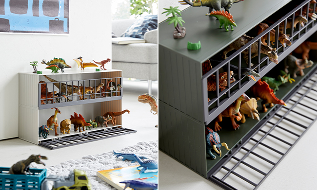 恐竜やアニマルのおもちゃを楽しみながら収納できます。