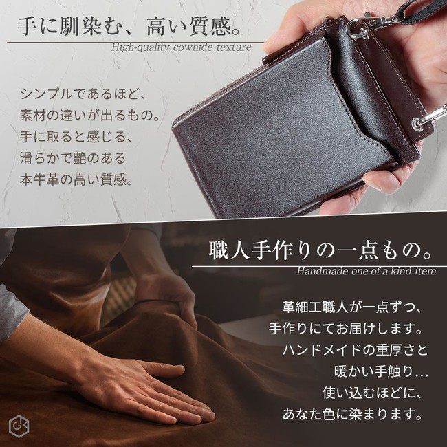コンパクトに必要なものだけを持ち運びたい、というミニマリストの声から生まれた本革ネックウォレット。
