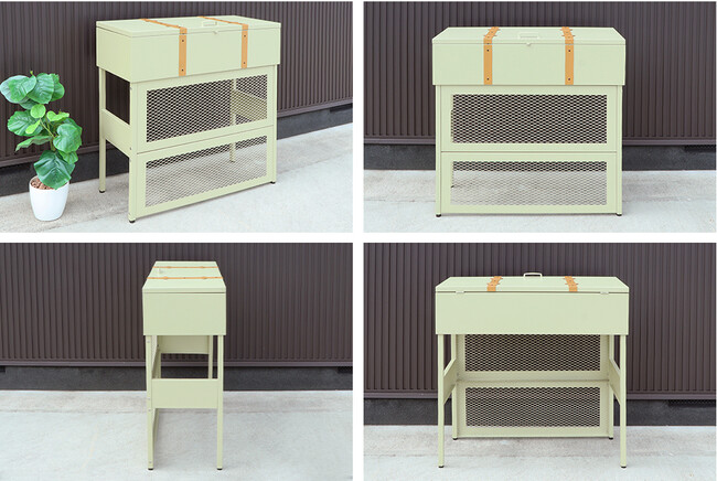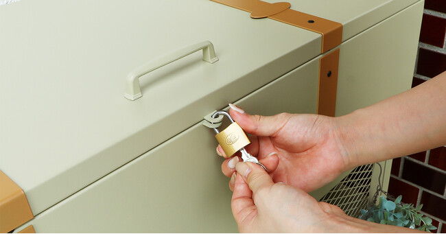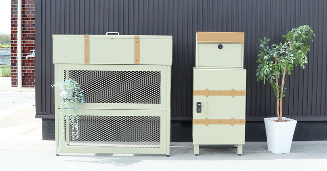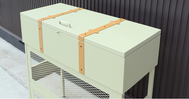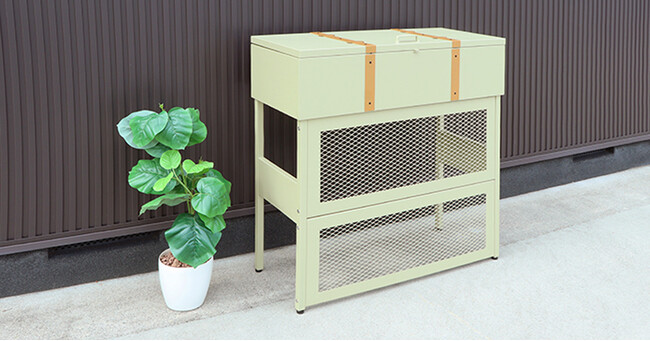 室外機カバーの上部にある収納庫は、キャリーケースのようなユニークなデザインとなっています。実はこれ、同社製品「宅配ボックス Flaner(フラネ)」から着想を得ています。宅配ボックスと一緒に使えば、エクステリアに統一感が出ること間違いなし!【Flaner(フラネ)】シリーズ第二段の登場です。
