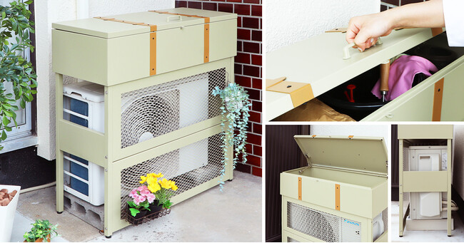 「ヤマソロ」エアコンの室外機をおしゃれにカバー!しかも収納庫付き