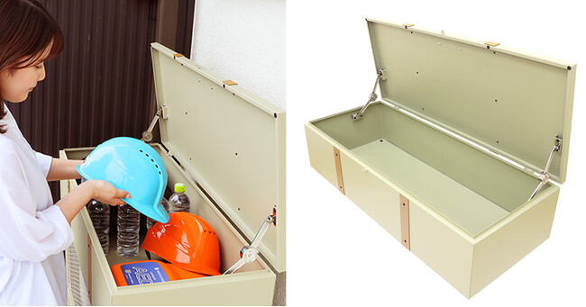 収納BOXは、上段BOXは、500mlペットボトル60本を収納することができるほどの大容量で、備蓄場所としても役立ちます。その他、ガーデニンググッズや、災害時に役立つ防災グッズなどの保管場所としてもおすすめです。