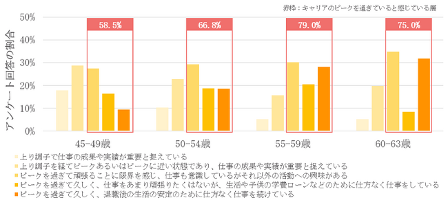 また、当社が2022年に実施したアンケート調査(45歳から63歳までの2,000人に対して実施)においては、対象者の過半数がキャリアのピークを過ぎていると認識しており、キャリア拡張について自発的に行動している方は限定的であることが明らかとなりました。