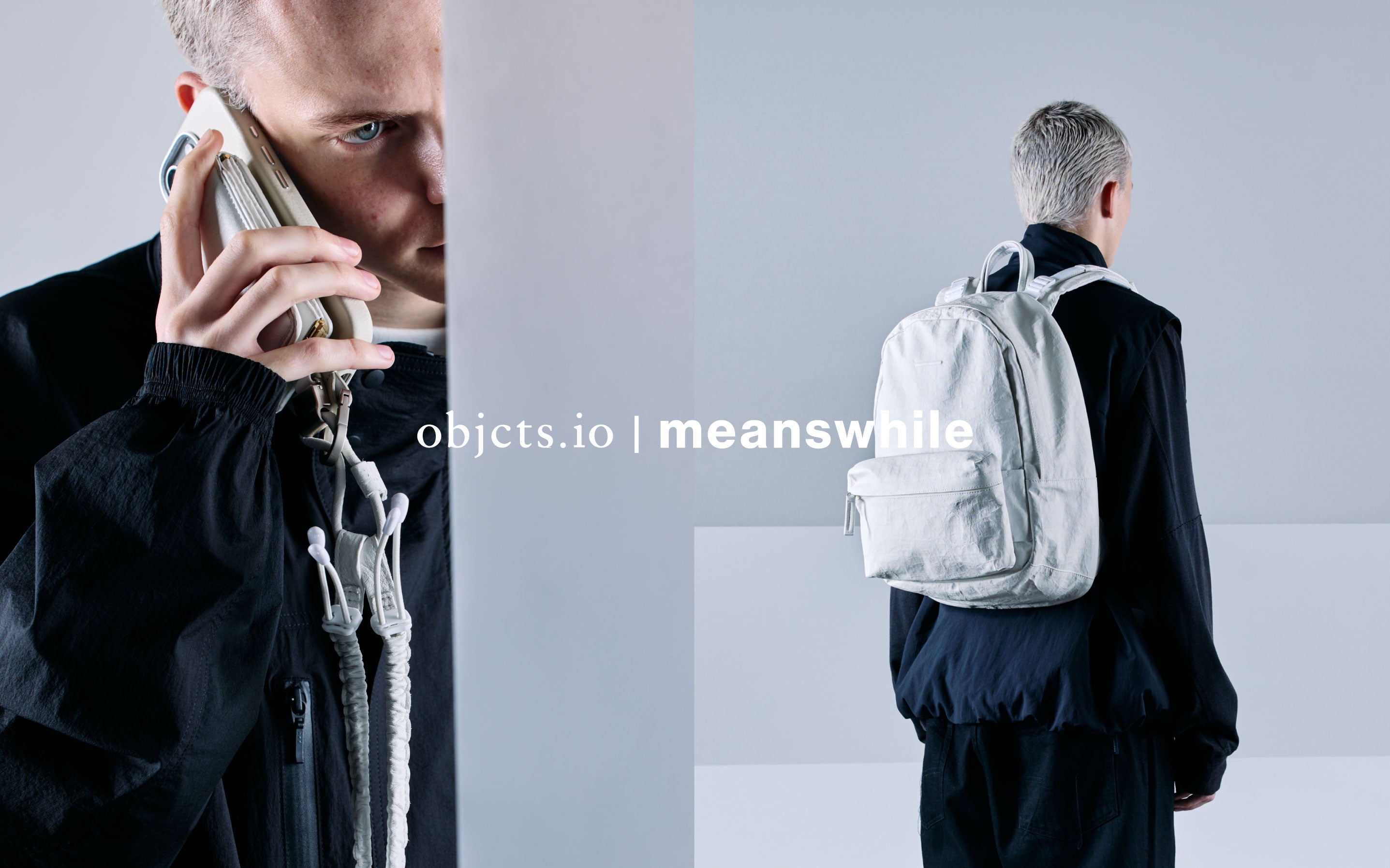 「現代人の移動をアップデートする」をコンセプトに、審美性と機能性が高次元で調和されたプロダクトを生み出す『objcts.io』と「日常着である以上、服は衣装ではなく道具である」をコンセプトに掲げる『meanswhile(ミーンズワイル)』。