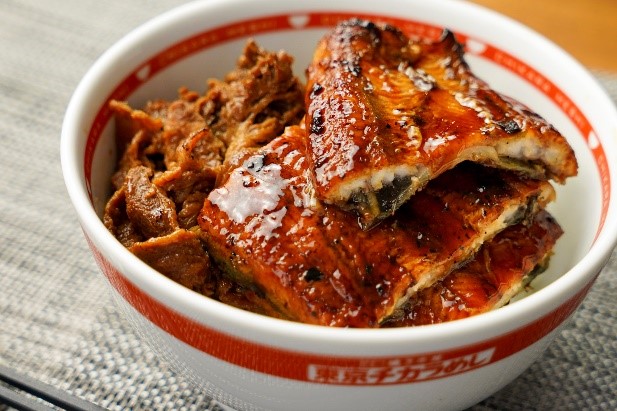 静岡県産のうなぎの蒲焼きと焼き牛丼をセットで楽しめます。