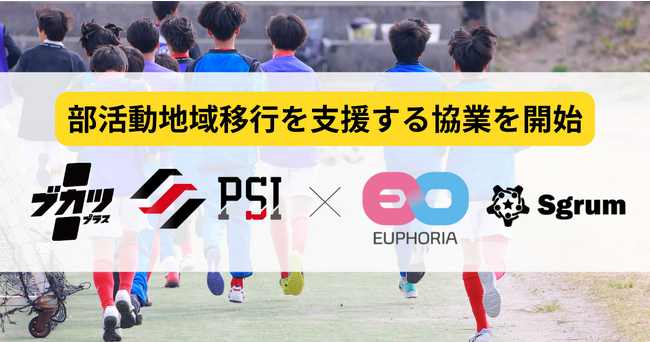 スポーツテック企業のユーフォリア(本社:東京都千代田区、共同代表:橋口 寛/宮田 誠、以下 ユーフォリア)は、プラスクラス・スポーツ・インキュベーション株式会社(所在地:東京都千代田区、代表:平地 大樹、以下 PSI)と部活動の地域移行領域における業務提携契約を締結したことをお知らせいたします。本提携により、PSIの部活動地域移行支援サービス「ブカツプラス」とユーフォリアが運営するスポーツクラブ・スクールの運営管理アプリ「Sgrum」は協働で部活動の地域移行と運営業務の効率化を進めてまいります。