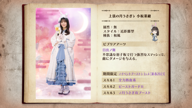 「★4上弦の月うさぎ♭ 小坂菜緒」はパーティ内の『月うさぎ』ユニットを強化するイベント効果持ち!