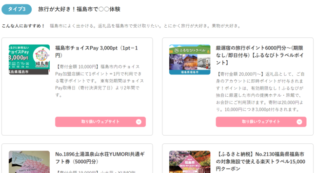 福島市観光コンベンション協会運営の観光WEBメディア「福島市観光ノート」内ふるさと納税特集ページの紹介