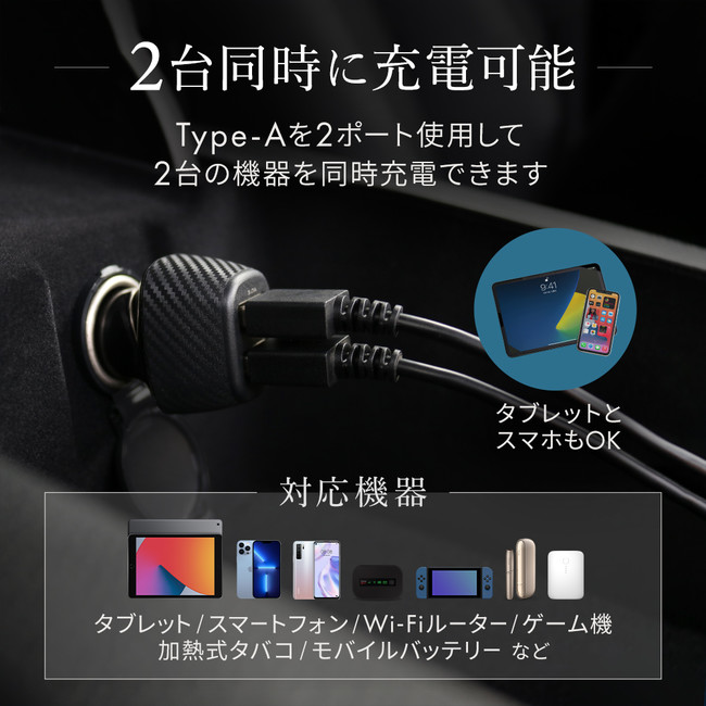 超速充電に対応!2台同時に充電ができる車載充電器2タイプを発売