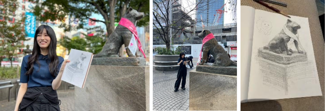 12名の現代アーティストの中には、日本テレビで放送中「THE ART HOUSE」で紹介した福島滉平、池平徹兵、金理有、田中里姫らの新進気鋭のアーティストに加え、人気絶頂のアイドルグループ乃木坂46メンバーで、現在、東京藝術大学に在籍中、池田瑛紗(21歳)も参加!アーティストとして、ハチ公アートの制作に臨んだ。渋谷のハチ公像をスケッチしたり、取材を重ね、イメージを膨らませたアーティスト池田瑛紗の作品は果たして?!