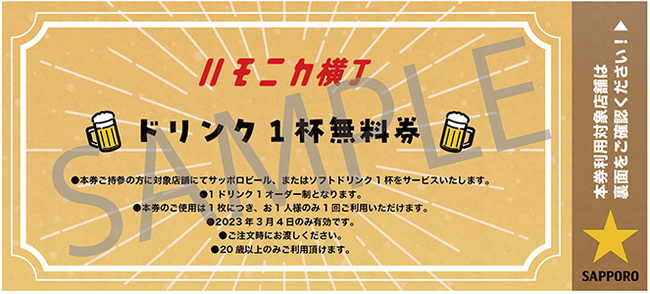 当日一般チケットにて入場された方を対象に、ハモニカ横丁のいくつかのお店で使える、ドリンク1杯無料券をプレゼントいたします。